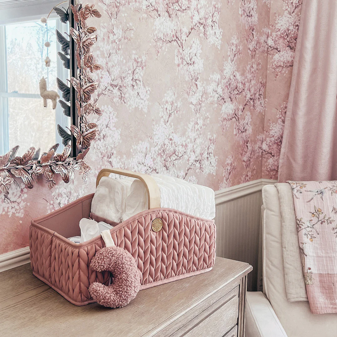 Elevate your nursery with this must-have parenting hack: the Diaper Caddy from HAPP Brand. A game changer for organization and convenience, it totes your baby’s essentials from room to room for hassle-free diaper changes while the chic herringbone quilting (made from a thicker, more durable material than our diaper bag line) stylishly coordinates with nursery decor. The removable, adjustable divider makes it simple to organize everything you need for diaper changes, playtime, story time, and more. Don’t be surprised if you want one in every room, as the versatile design allows you to use it beyond the baby years.